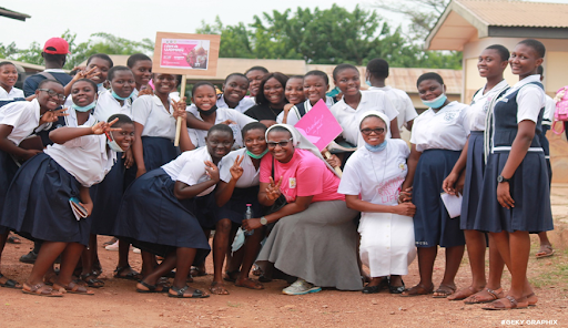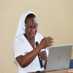 Sr. Grace became the first woman religious elected as Faculty Student President at CUCG on the 26th of June, 2021, an office she held for the 2021-2022 academic year. In this capacity, she oversaw the faculty student body composed of those studying general nursing, midwifery, public health, and public health nursing. Within the leadership team were 11 other students, all young people, whom she directed. The position required multitasking tasks such as: promoting breast cancer awareness throughout the institution and community, account auditing, facilitating a faculty week celebration, and fundraising. Sr. Grace successfully led efforts to gather funds through saving of student dues, laboratory coat and name tag sales, and budgeting. This allowed the team to purchase a much needed projector for the department. In addition to her role as Faculty Student President, Sr. Grace has remained an excellent student who is excelling in her studies.