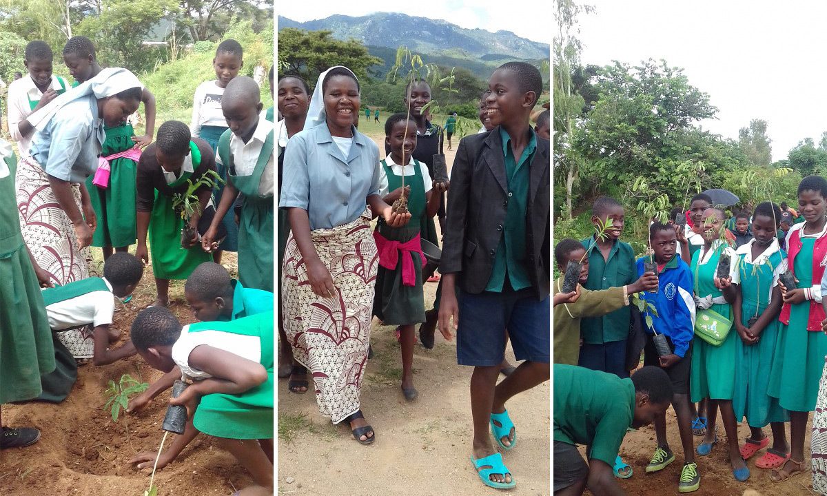 Sr. Bertha teaches nearly 150 primary school students in Ntcheu, Malawi how to plant and care for trees and protect our precious environment.